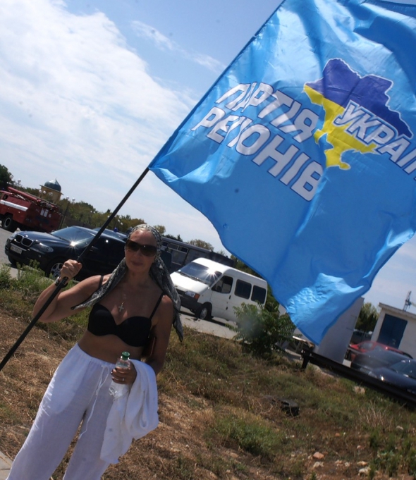 "Уздовж дороги стояли нечисленні вітаючі севастопольці. Васильєва, побачивши, що Янукович виїжджає з готелю, зняла кофту, схопила прапор Партії регіонів і стала кричати:" Ура Президенту!! ".
