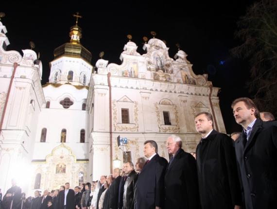 Президент Віктор Янукович і його соратники слухали пасхальне богослужіння у Києво-Печерській лаврі.