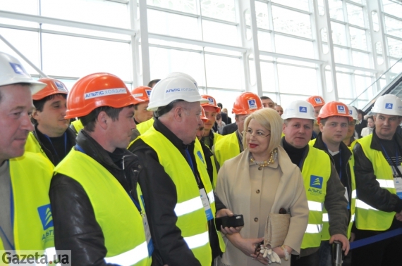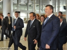 По прибуттю, Янукович разом із Мішелем Платіні розрізали символічну срічку та пройшлися двома поверхами нового аеропорту.