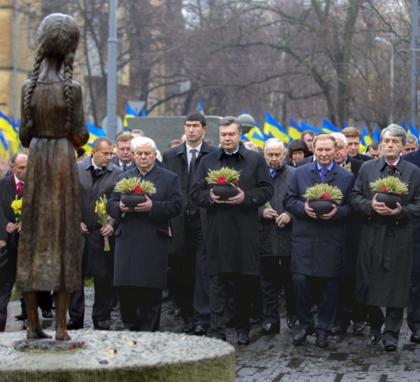 Президент очолив скорботну ходу вздовж центральної алеї Національного музею "Меморіал пам'яті жертв голодоморів в Україні". Учасники ходи встановили символічні композиції з колосків пшениці та квітів до скульптури "Гірка пам'ять дитинства".