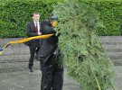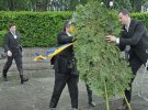 Медведєва трохи побило градом. Вінок зі стрічкою триколора теж мав намір відірватися від конструкції і впасти на російського президента. Однак охоронці встигли його притримати.