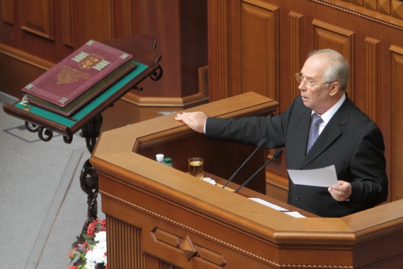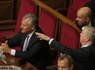 "Надеюсь президент сегодня будет", - кидає на ходу лідер фракції Партії регіонів Олександр Єфремов і заходить до сесійної зали. Тут реєструються 365 народних депутатів. "Регіонали" стоячи оплесками вітають президента та членів уряду. Опозиціонери на їх появу не реагують. Рибак інформує, що в залі присутні колишній президент Польщі Олександр Квасневский і член представник Європарламенту Пет Кокс. Потім до слова запрошує Януковича.