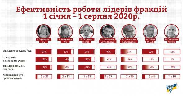 Роботу керівників фракцій оцінили за участю у пленарних засіданнях, голосуваннях, відвідування комітетів та успішності законодавчої роботи.
