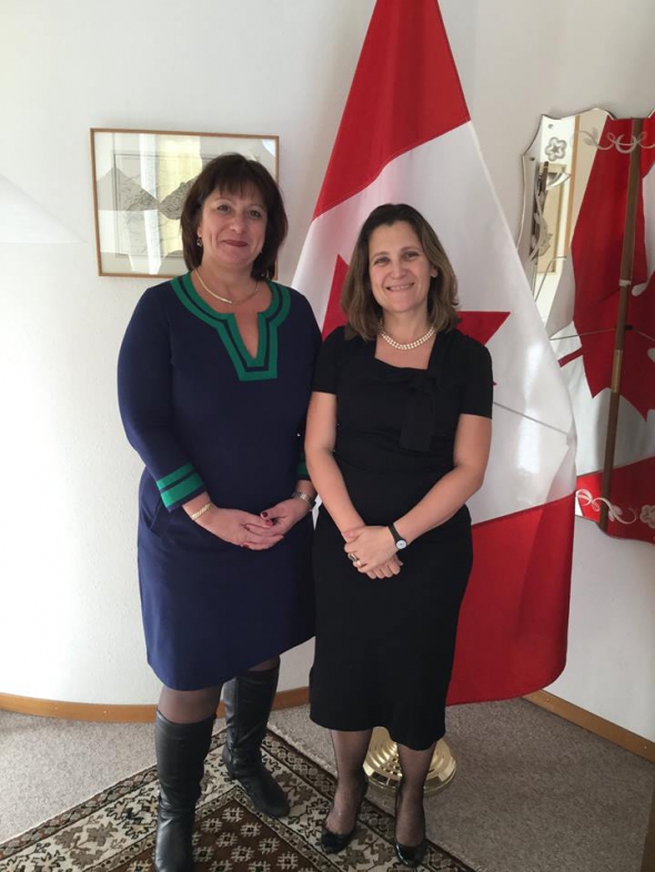 "Сьогодні мала приємну зустріч з міністром міжнародної торгівлі Канади та своєю хорошою давньою подругою Chrystia Freeland", - написала Яресько.