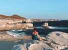 Народна депутатка від "Батьківщини" Альона Шкрум також поїхала у відпустку. Гуляла по вулканічному камінню на грецькому острові Мілос. Сфотографувалася у білому купальнику та синій сукні-сорочці.