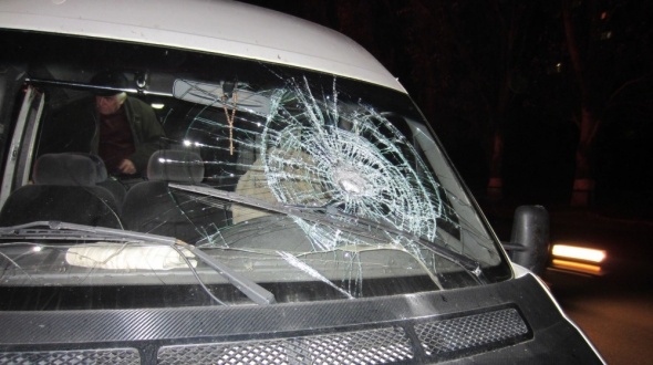 Безпосередньо під час такої зупинки в районному центрі Олександрівка до транспортного засобу підбіг невідомий чоловік у камуфляжі і важким предметом розбив лобове скло. Намагання міліціонерів наздогнати зловмисника виявилися марними.