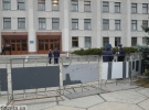 По периметру обласної адміністрації стояли міліціонери у формі. За дві години перед початком мітингу вхід обгородили парканом. Його конструкції закріпили металевими гачками.