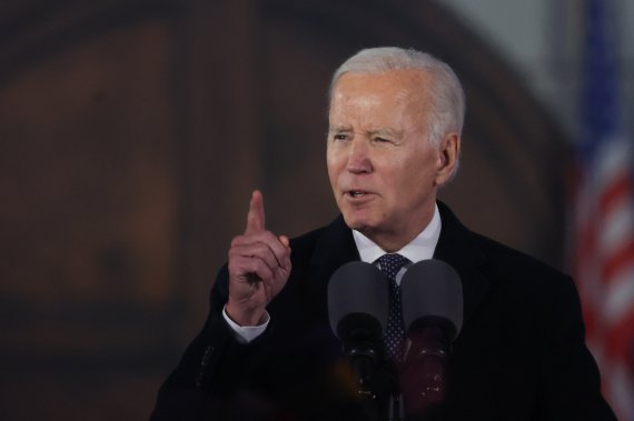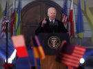 "Рік тому почалася війна. Я щойо повернувся із Києва. І Київ міцно стоїть. Київ стоїть і пишається цим. І найголовніше – що він вільний", – сказав Байден.