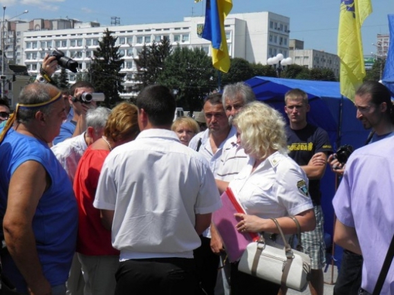 "Спочатку вони мали претензії до намету "Свободи", – каже координатор черкаської опозиції Леонід Даценко. – Коли організатори показали їм, що місцева філія Української народної молоді подала в міськраду нову заявку і акція проводиться цілком законно, то міліціонери знітилися. Натомість несподівано прибув загін із 50 "беркутівців".
