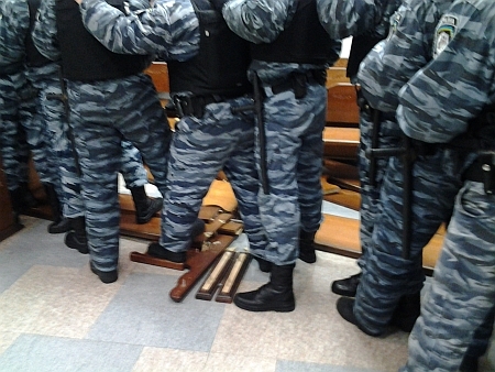 Співробітники спецпідрозділу "Беркут" та судової міліції "Грифон" силою вивели народних депутатів від опозиції із зали засідання Апеляційного суду Києва, де в середу повинні були проводитися слідчі дії у кримінальному виробництві про вбивство депутата Євгена Щербаня.