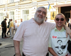 "Інформація, яка опублікована в Інтернеті, стосовно того, що ми збираємося побити нашого лідера аби зірвати судове засідання це абсурд і брудна провокація. Насправді саме люди які зображені на наших футболках чинять провокації", - пояснив він.