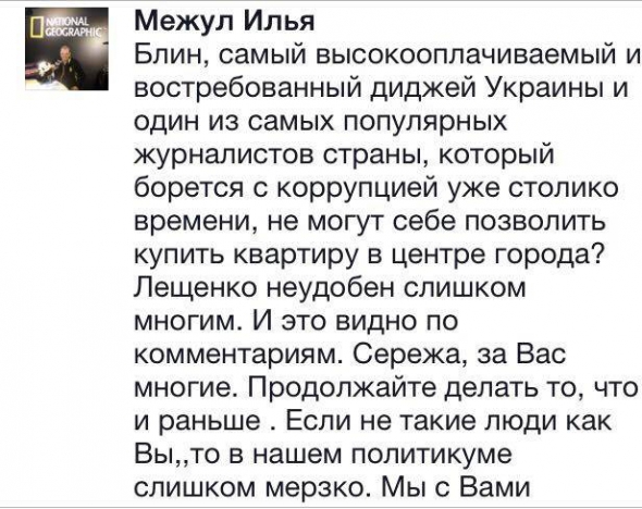 Лещенко розповів, що квартиру записав на себе.