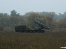 Підрозділи реактивної артилерії б'ють по російських окупантах із української 220-мм реактивної системи залпового вогню "Буревій".