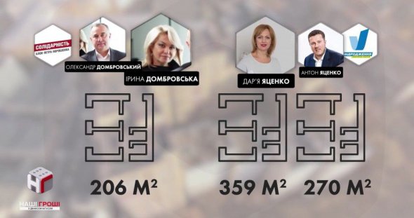 Власником найбільших апартаментів площею 206 кв. м у ЖК стала Ірина Домбровська – дружина народного депутата від "Блоку Петра Порошенка" Олександра Домбровського.