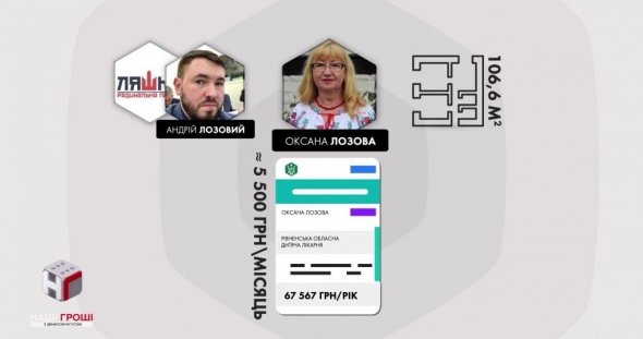 2-кімнатною квартирою на 106,6 кв. м володіє й Оксана Лозова – мати нардепа Андрія Лозового. Жінка працює завідувачем відділення педіатрії у Рівненській обласній дитячій лікарні та є депутатом Рівненської облради. Торік її офіційна зарплатня складала близько 5,5 тис. грн на місяць.