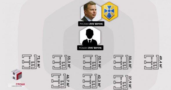 У березні цьогоріч 8 квартир на вулиці Євгена Коновальця, 36-Е за договорами дарування відійшли і синові народного депутата від "Народного фронту" Руслана Лук'янчука. Загальна площа подарунків – майже 400 кв. м, а ціна сягає 14 млн грн.