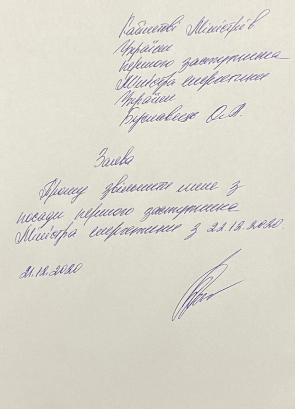 Перша заступниця міністра енергетики Ольга Буславець написала заяву про звільнення. Про це вона повідомила у Facebook.