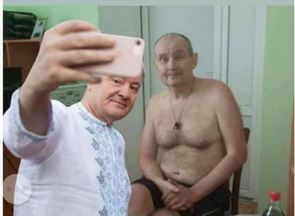 Його привезли до Києва сили СБУ, де у них намагалися відбити екс-суддю детективи НАБУ. Світлина Чауса стала хітом соцмереж, де на неї уже наклепали немало фотожаб.