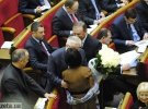Під час виступу Яценюка з трибуни, її оточили депутати із "Батьківщини" та "Свободи".