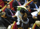 Депутати від фракції "Батьківщина" розвісили у президії плакат: "Юлі волю — Україні волю!".