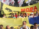 Уже ближче до Верховної Ради колона опозиції об'єдналася з мітингувальниками, які зібралися сьогодні зранку на захист української мови.