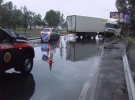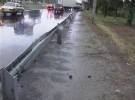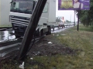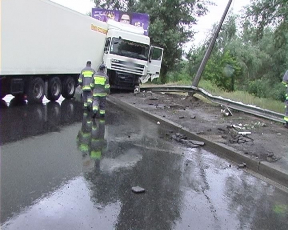 Ваговоз зачепив і зруйнував з сотню метрів відбійника, склався навпіл і завмер, перекривши усі смуги руху у своєму напрямку і зламавши електроопору.