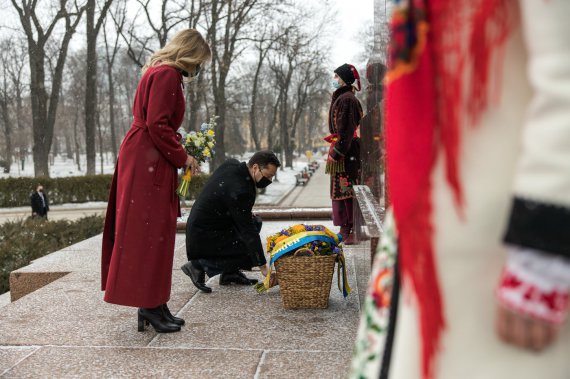 Глава держави і перша леді поклали квіти до пам'ятника Кобзареві у Києві.