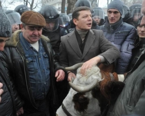 Нагадаємо, вчора учасники акції протесту аграріїв проти прийняття закону про ринок землі сільськогосподарського призначення, яка проходила біля Верховної ради, привели під будівлю парламенту корову, яку потім передали Олегу Ляшку. Депутат навіть зробив спробу провести її на територію парламенту.