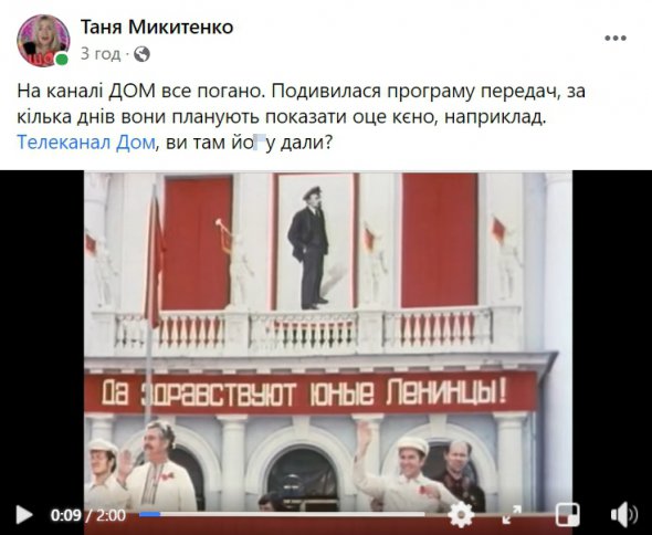 Телеканал Дом, ви там *обу дали?", - запитує Тетяна Микитенко і показала уривок із фільму.