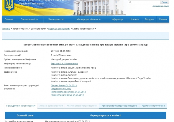 Депутат від "Батьківщини" Сергій Терьохін таки зареєстрував у Верховній Раді проект постанови про запровадження свята "Пакращі".