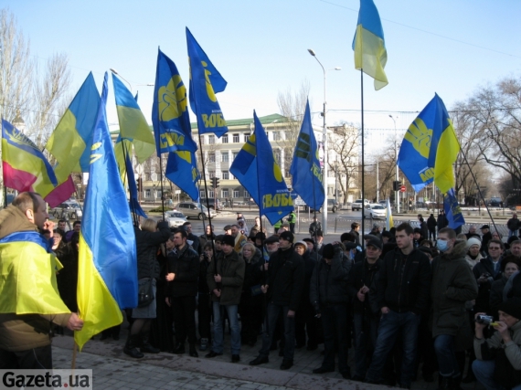 "Більше 90 років тому були об'єднані українські землі в єдину державу. В даний час так само необхідно об'єднати опозиційні сили в один єдиний фронт для боротьби з антиукраїнською владою", - сказав на мітингу представник ВО "Батьківщина" Сергій Кайдаш.
