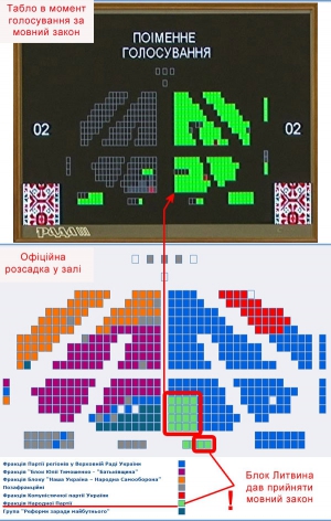 Водночас у результатах голосування вказано, що фракція спікера дала лише два голоси. Отже з місць литвинівців проголосували депутати-перебіжчики.