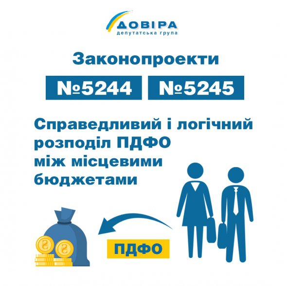 За ініціативою депутатської групи "Довіра" у Верховній Раді зареєстровані законопроекти №5244 і №5245, які встановлюють новий принцип розподілу податку на доходи фізичних осіб між місцевими бюджетами.