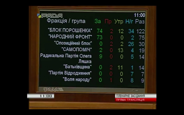 Не підтримали включення документу на розгляд фракції "Батьківщина", "Самопоміч" ("за" - два), "Опозиційний блок", групи "Воля народу" і "Відродження".