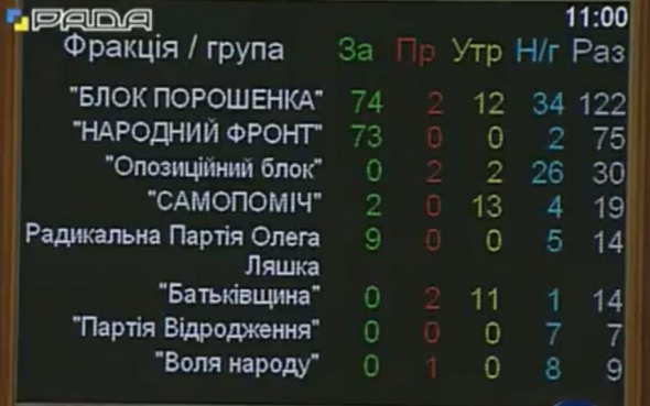 Серед них у фракції БПП - 74, "Народному фронті" - 73.