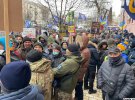 Поки в Печерському райсуді Києва триває засідання у справі Петра Порошенка, під будівлею суду продовжують збиратися люди.