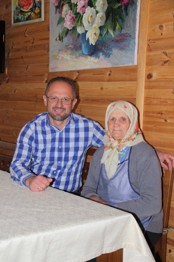 До кухні заходить літня жінка в хустці. Обнімає нас, цілує, витирає сльози: "Ти моя пташко". Це мама Романа Безсмертного – 78-річна Ольга Дем'янівна.