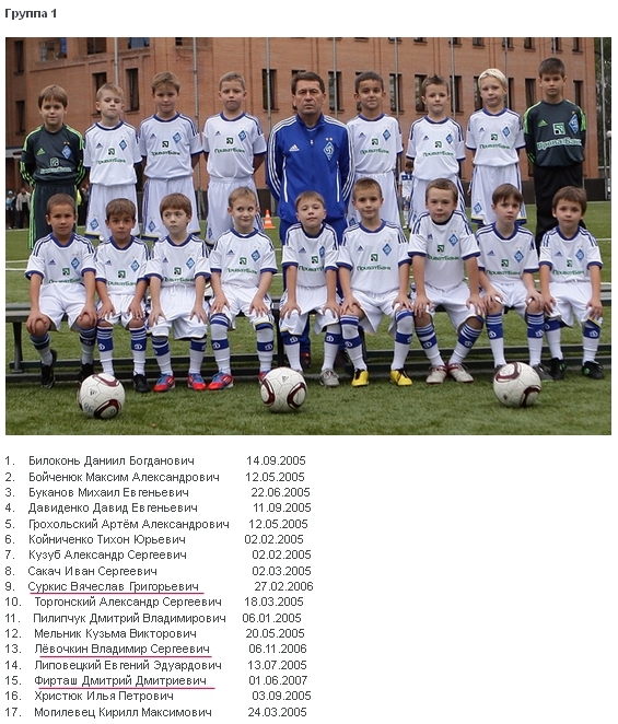 На офіційному сайті "Динамо" (Київ) з'явився список команди 2005 року народження футбольної школи на 2012/2013 навчальний рік.