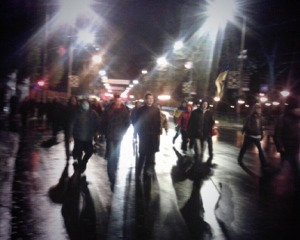 Колона у складі 500-1000 чоловік рушила на Московську. На півдорозі Левченко звернувся до людей, що двох перевезли в СІЗО. Звільнення керівництва райвідділку. 5 хвилин тому колона прибула під райвідділок.