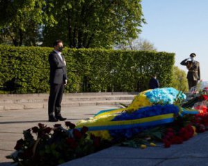 Володимир Зеленський поклав квіти до Вічного вогню, вшанувавши пам'ять воїнів, загиблих під час Другої світової війни. Квіти до підніжжя меморіалу також поклав керівник Офісу Президента Андрій Єрмак. Оголосили хвилину мовчання, пролунали удари барабана. Військовий оркестр виконав Державний гімн України. Воїни почесної варти салютували з особистої зброї шістьма залпами та пройшли перед монументом урочистим маршем.