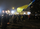 15-метровий банер "Ти відповіси за криваву йолку!" молоді люди намагалися прикріпити до паркану вздовж центральної вулиці, але співробітники міліції завадили їм це зробити.