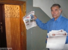 Де ніхто не відкриває, там Деркач залишає газети Об'єднаної опозиції. Намагається засунути в поштові скриньки таким чином, щоб відразу впадала в очі бабуся з котом, "на якого переписала хату".