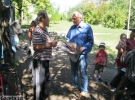 - О, подивіться - бабка сидить у наметі Партії регіонів. На минулих виборах сиділа в наметі КПУ. Платять їй 50 гривень в день, - розповідає приятель Деркача, місцевий житель і теж чорнобилець Юрій, який прилучився до "агітбригади".