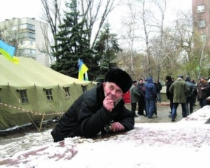Державні виконавці прийшли в наметове містечко голодуючих під донецьким обласним управлінням Пенсійного фонду чорнобильців з новим виконавчим листом.