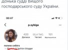 "А це - профіль доньки переможця "конкурсу" на посаду судді КСУ за квотою Зеленського Олександра Сибіги. Фешнблогерка і папина донька Поліна живе в Москві, столиці країни-агресора РФ, і радіє тортам в стилі "рабочий и колхозница". А тато, колишній суддя ВГСУ, тут готується зайняти місце в суді, який має боронити українську державність.