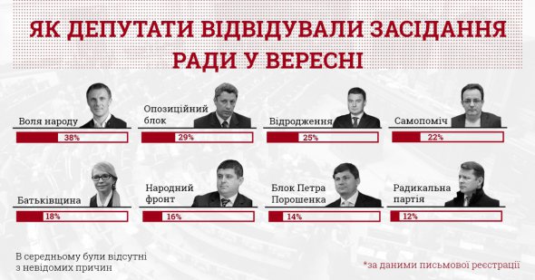 Найбільше депутатів-прогульників у групах "Воля Народу" і "Відродження" і фракції "Опоблоку".