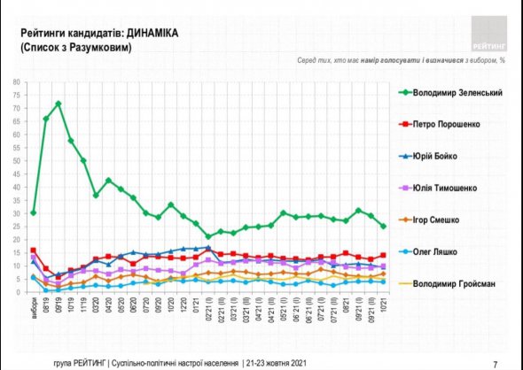 Соціологічна група "Рейтинг" оприлюднила результати опитування, які теж свідчать про падіння електоральної підтримки президента Володимира Зеленського та партії "Слуга народу". Натомість підтримка Петра Порошенка та партії "Європейська Солідарність" росте.