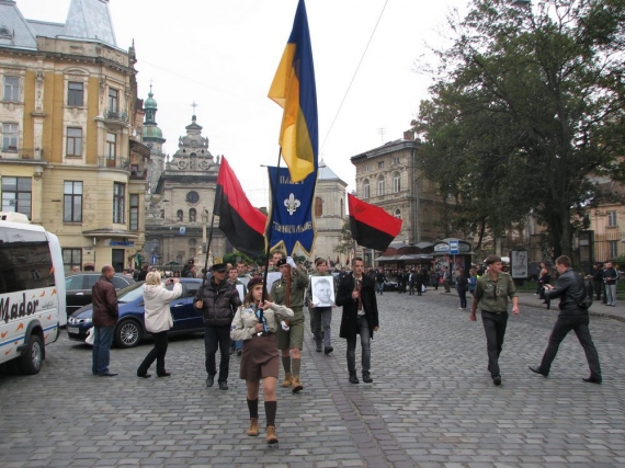 Сьогодні у Львові відбувся "Марш слави УПА" на честь 70-річчя від дня створення Української повстанської армії. Акцію організувало товариство пошуку жертв війни "Пам'ять" та ПЛАСТ.