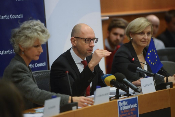 "Росія має заплатити ціну за злочини, які вчинила проти України та українського народу. Єдиний рецепт, який у нас є, - залишатися об'єднаними, разом боротися проти тих, хто хоче вбити демократію в світі", - наголосив лідер партії "Народний фронт" Арсеній Яценюк у Брюселі 29 листопада під час міжнародної конференції "Війна на Сході України: військовий конфлікт, дипломатія та гуманітарна криза", у якій він взяв участь на запрошення Атлантичної ради.