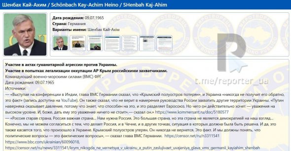 Екскомандувача Військово-морських сил Німеччини Кай-Ахіма Шенбаха внесли до бази сайту "Миротворець".